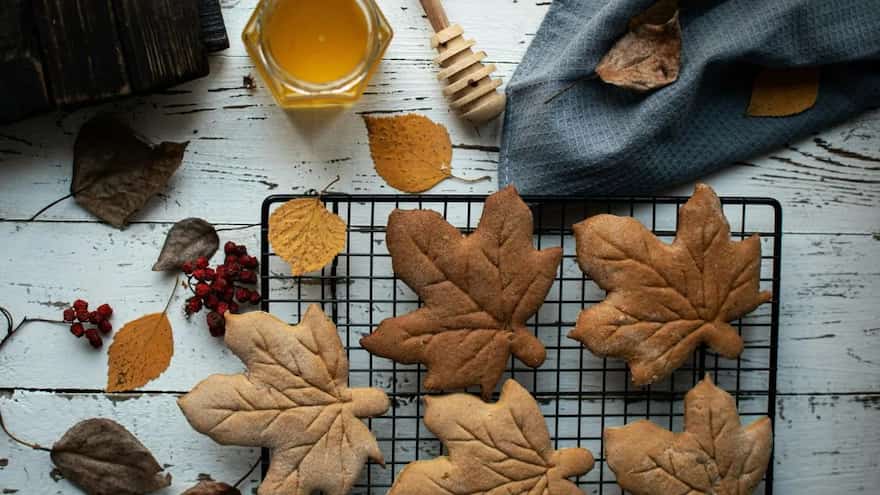 Cut-out cookies do not always have to be for children—and these beautiful cookies are testament to that. Shaped like a maple leaf and glazed with a maple syrup-flavoured icing, enhance the flavour of your cookie dough before baking it in the oven with a touch of cinnamon. Use chopped walnuts to adorn the glaze once it has been applied, as well as to bring a welcome nuttiness that makes the treats feel seasonal and addictive.