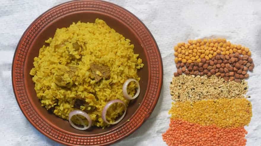 Instead of preparing the usual veggie khichadi, turn to the more comforting moong dal khichadi which is simply a mixture of rice and moong dal steamed together. Seasoned with homemade masala, red chilli powder, turmeric, hing, cumin and coriander powders, the khichadi becomes a lightly spiced yet very warm and comforting dish to have after eating heavy all day. Have it with a dollop of ghee which enhances the khichadi’s flavours and a side of curd that introduces a cooling effect into the reset dinner.