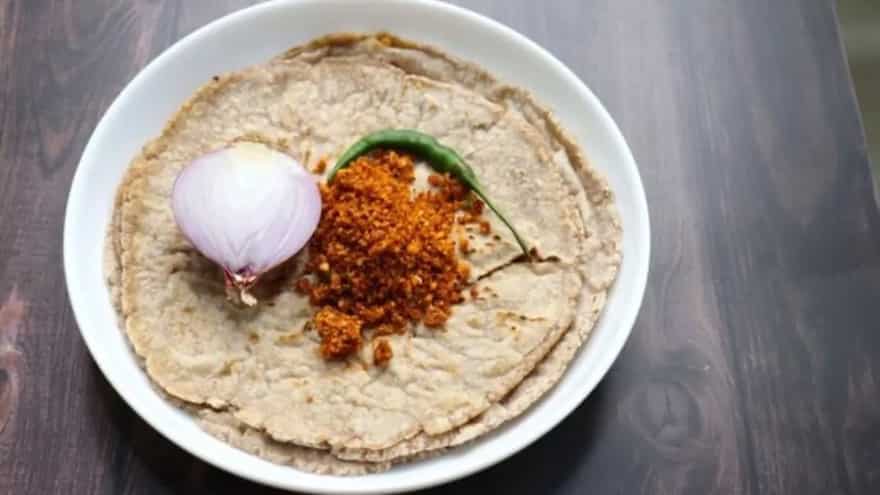 As the sun climbs higher over the salt pans, the play of colours winds down, and families gather for the heavy mid-day meal. In the Rann, wheat is a luxury, while bajra or pearl millet is the staple. For Holi, the bajra na rotla is prepared with extra care. These thick, hand-patted flatbreads are cooked over a slow charcoal fire until they develop a smoky char. The rotla is never eaten alone. It is traditionally accompanied by ringna no oro, the Kutchi version of baingan bharta. The aubergines are roasted until the skin blisters, then mashed and sautéed with onions, tomatoes, and a heavy dose of garlic. Speaking of garlic, the lasan ni chutney (garlic chutney) is the fiery soul of the meal. Made with dry red chillies and local garlic, it provides a sharp contrast to the cooling dairy products that follow.