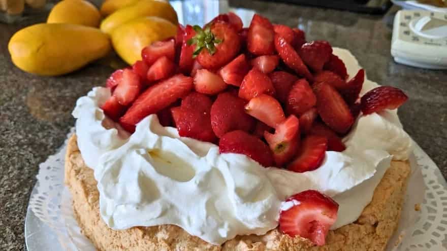 Tip: If the strawberries lack sweetness, toss them in lime juice and a tablespoon of sugar before topping. The cake is done when it has a slight pink tinge and is dry to the touch.