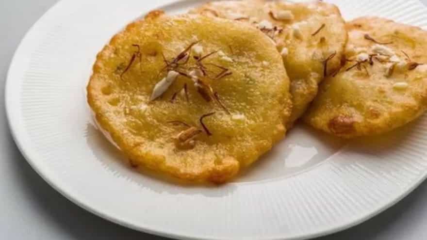 Fried or baked sweet breads and pastries (examples in Romani/related regional traditions include various fried doughs, poppy-seed cakes and cheese-filled doughs) are widely reported across Romani communities and among neighbouring populations; pirogo (sweet noodle pudding) also appears on festival tables. These items can be fried, baked or pan-cooked and commonly use flour, eggs, dairy/cheese, sugar and dried fruits. Indian festivals likewise centre on special fried and sweet breads (malpua, gujiya, jalebi, balushahi, etc.), where a simple dough plus oil and sugar becomes a treat preserved for celebrations.