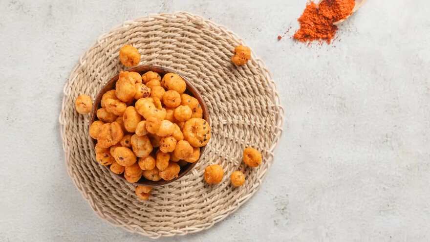Whether it is granola, cookies or even delicious caramel makhana a la popcorn, baking fox nuts is a great way to crisp them evenly without having to slave near the stovetop endlessly. Toss the makhana in a spice blend of choice and drizzle some ghee over them before baking for a savoury-spicy munchy to enjoy at movie time or serve at a party. Toss them with oats, maple syrup, assorted seeds and peanut butter to make a delicious granola-like mixture that also acts as a health-forward replacement to traditional desserts, for those with dietary restrictions.
