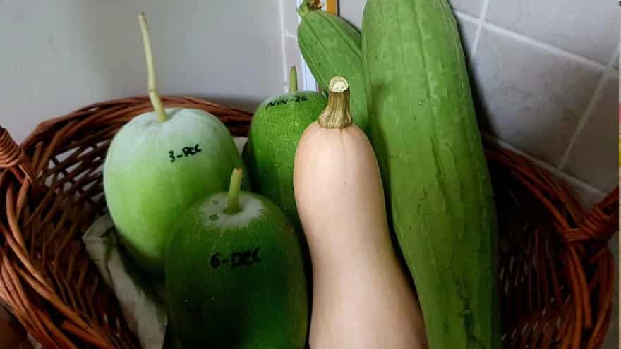 Asha discovered gourds can survive outside for months at a time (and labels them to keep track)