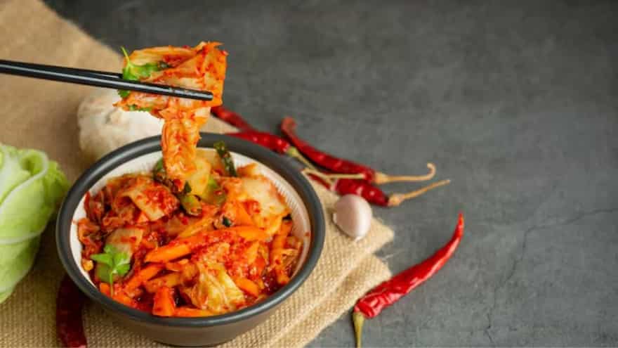 Kimchi is a traditional Korean side dish prepared by fermenting vegetables such as cabbage and radish with salt, chilli, garlic, ginger, and seasonings. It is tangy, spicy, slightly sour, and is filled with gut-friendly probiotics. To suit the Indian taste buds, you can give it a desi twist by adding some mustard oil, ajwain, or Indian red chilli powder, changing it into a spicy, pickle-style side dish for everyday dal-chawal or parathas.