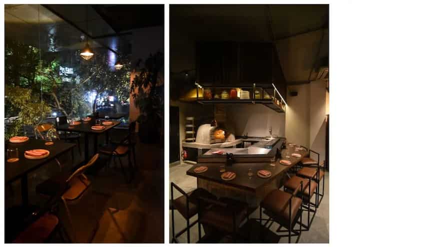 We scan the inventive, tightly-edited and vibrantly-designed menu of small plates, pizzettes, 11-inch pizzas, salads, desserts and in-house fermented beverages designed by the trio of chefs – Rahul Singh, Siddharth Nest and Vichita Kumar (of Bar Sama and ex-Comal). Quite quickly, we’re picking out options under the many headings. Soon, our table looks prettier with small plates of Grilled Eggplant, Harissa & Fresh Moz; The Morning After – Steak & Eggs and Grilled Salmon, Nori & Ponzu and the Parma & Peru pizzette.