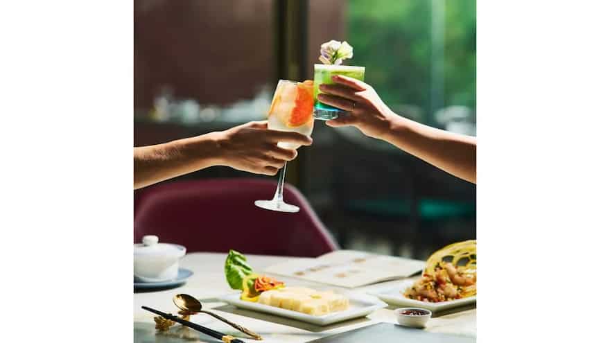 We mixed and matched: we scooped a little bit of juicy sweetness, nudges of red chillies, spikes of savoury delight, and an interplay of textures. A Chinese dinner will forever be a treat in our hearts; it spans our nostalgic celebrations to the ones in our now – and this dinner was another exciting chorus of delectables on this long, ever-growing list. One of us reached for the tropical brightness of a Singapore Sling to pepper between each bite. Did we get dessert? Yes, these two beached whales went on to eat the chocolate dome and a Chinese mango pudding. The chocolate dome did deliver beyond the drama of drizzling molten chocolate sauce onto a shell to reveal more chocolate.