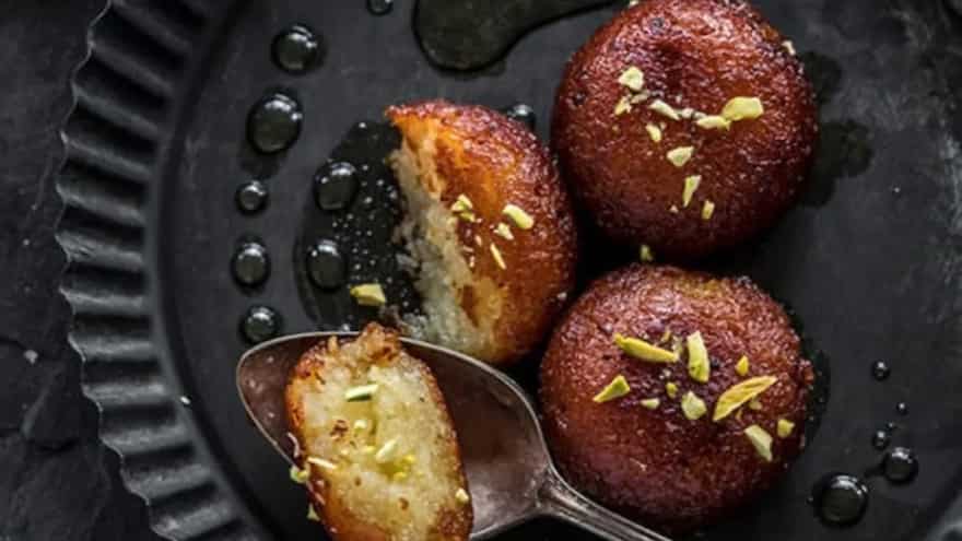 - Let hot jamuns soak in warm sugar syrup for at least 2 hours to absorb flavour and soften.