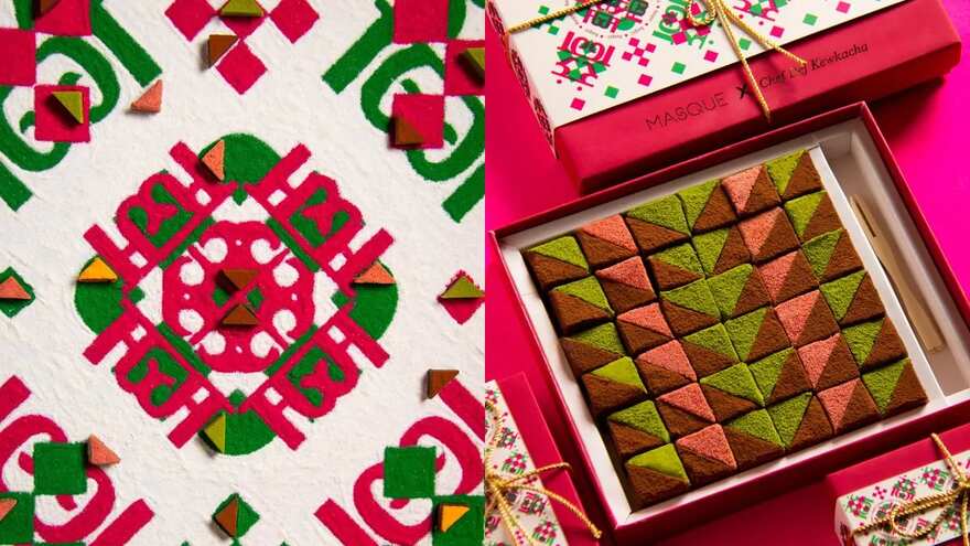 Though at its heart it’s a seasonal festive offering, it’s also a meeting of two culinary styles and cross-cultural ingredients. Chef Varun Totlani's contemporary Indian approach meets Dej's innovative use of local Thai flavours which shaped dessert culture across Southeast Asia. The brainchild, Rangoli, named after the vibrant floor art that adorns Indian homes during festivals is emblematic of the artistry that went into this collaboration.