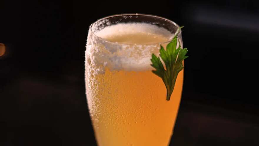 - Top with chilled lager beer and stir gently to combine.