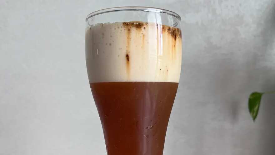 - Put vodka, coconut water, sugar, and espresso into a chilled glass.