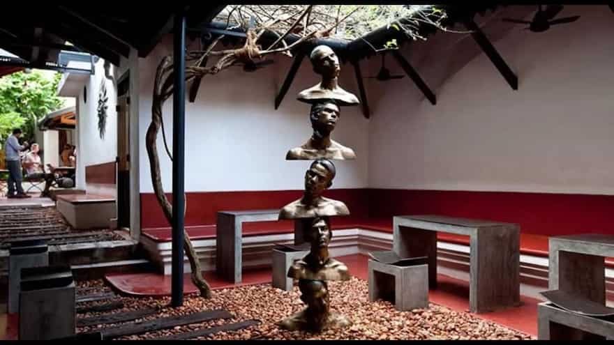 Pepper House serves as one of the Biennale’s confirmed exhibition locations for 2025–26, housed in a former waterfront warehouse that now accommodates galleries, studios and a central courtyard. The café inside this complex is situated in a shaded, open area that becomes a natural resting point for those exploring installations in the adjacent rooms. Additionally, this year the cafe will be showcasing works by artist Hasseena Suresh as special programming. Visitors often spend time between the gallery spaces and the café, and a strong speciality coffee to pair with the popular house brownie is highly recommended. The architecture, marked by its long corridors, tiled roofing and view toward the water, allows visitors to experience a different pace from the indoor exhibition rooms. Because Pepper House appears on every official Biennale map, the café is woven into most walking routes and remains one of the most convenient places to pause without stepping away from the festival atmosphere.