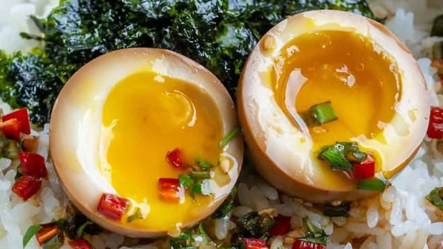 To recreate this flavour at home, you will need six large room-temperature eggs and a balanced marinade base. The liquid components consist of 100ml of soy sauce, 100ml of water, and 50ml of a sweetener such as honey or maple syrup. If you choose to use granulated sugar, it must be stirred until fully dissolved. The aromatic profile is built using three cloves of minced garlic, one small finely chopped red onion or two shallots, and a mix of green and red chillies. The heat can be adjusted by adding or removing the chilli seeds. To finish, a tablespoon each of toasted sesame seeds and toasted sesame oil provides the necessary nutty depth that defines the dish.