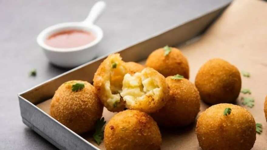 Amaranth, or rajgira, is widely used during fasting and provides a nutty taste along with a light crunch. For this dish, boiled potatoes are mixed with amaranth flour, crushed peanuts, and a touch of green chilli. The mixture is shaped into small balls and lightly brushed with ghee before being air fried in the Usha air fryer. They turn crisp on the outside while staying soft inside, making them an appealing finger food for platters. Served with coriander-coconut chutney seasoned with rock salt, these poppers balance tradition with a modern style of preparation.