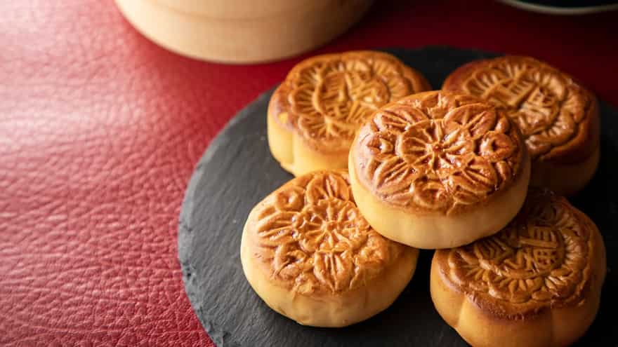 Lotus seed paste mooncakes are traditionally prepared during the Mid-Autumn Festival and carry deep cultural symbolism. The pastry shell encases a dense filling made from finely ground lotus seeds, sweetened carefully. Often, a salted egg yolk is added in the centre, representing the full moon.