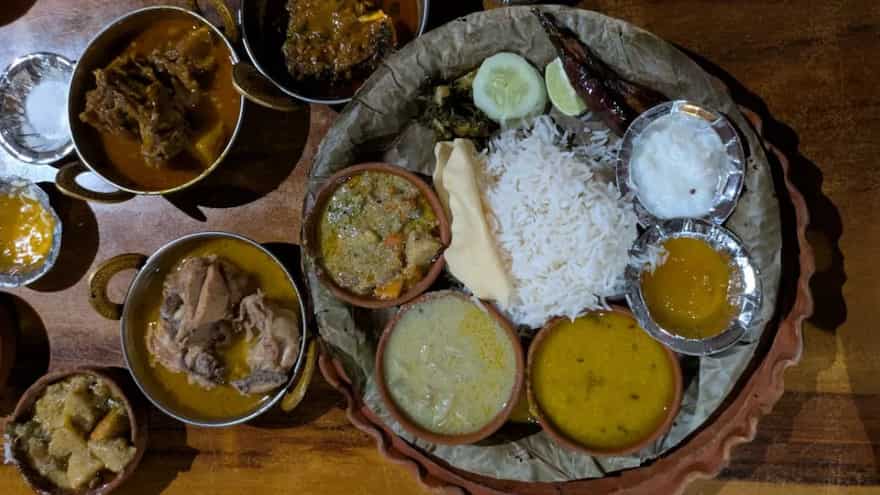 The traditional Bengali thali is a signature set meal in Bolpur, often served on brass or lotus plates. It features unlimited rice and a variety of vegetarian dishes. It is both affordable and filling, providing an authentic dining experience for visitors.