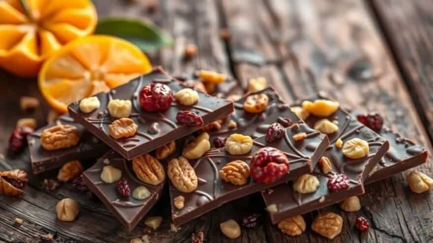 Chilli has emerged as an intriguing partner for chocolate because its warmth lifts the richness without producing a harsh edge. Dark chocolate supports this flavour well, and a mild chilli powder or finely crushed dried chilli can be used sparingly across the surface. Jaggery brittle adds another dimension through its deep caramel notes, and many families prepare brittle during winter festivals like Lohri and Uttarayan, which makes small shards easy to incorporate into holiday bark. These shards settle into the melted chocolate and create pockets of sweetness that contrast with the bitterness of the chocolate and the warmth of the chilli. The bark sets into pieces that feel rustic and generous, and many people reach for this variation when they want a treat that carries a slightly adventurous edge without abandoning festive comfort.