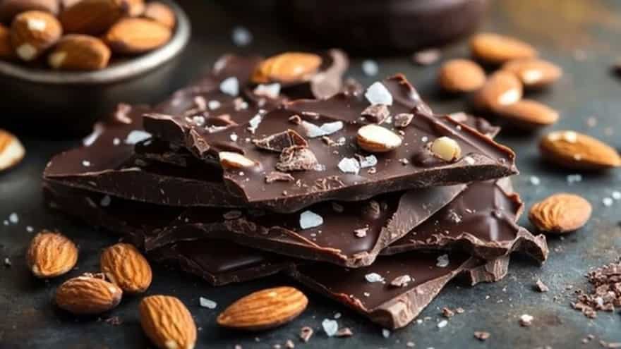 A generous layer of toasted nuts pairs beautifully with chocolate during the holidays, and the aroma deepens as the nuts warm, which creates a satisfying base for this variation. A mixture of cashews, walnuts, and almonds works well across Indian kitchens because these nuts remain available throughout the winter season. After the chocolate melts and spreads across the tray, the toasted nuts can be scattered across the surface to create a substantial bite. A light pinch of sea salt sharpens the overall flavour without overwhelming the chocolate or the nuts. The salt lifts the natural richness of the chocolate, and the nuts contribute a pleasing texture that suits festive snacking. Once the bark sets, the pieces can be packed in jars or small boxes for gifting during gatherings and seasonal celebrations.