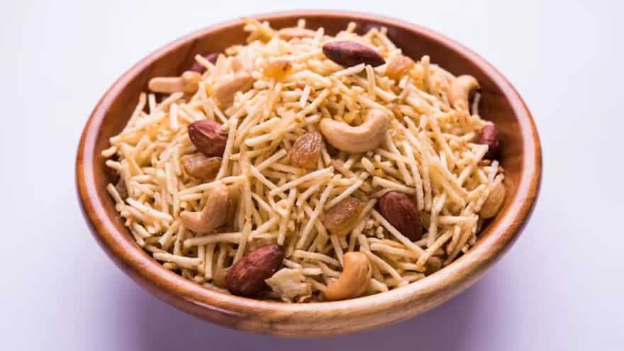 This chivda is also a favourite snack that can be enjoyed throughout the year. To make this, grate raw potatoes, and deep fry them into thin, crisp, golden strands. Toss them with fried peanuts, cashews, and some raisins, and season them with sendha namak and a touch of sugar. This chivda is light yet addictive, and makes for the perfect teatime snack during Sawan fasts.