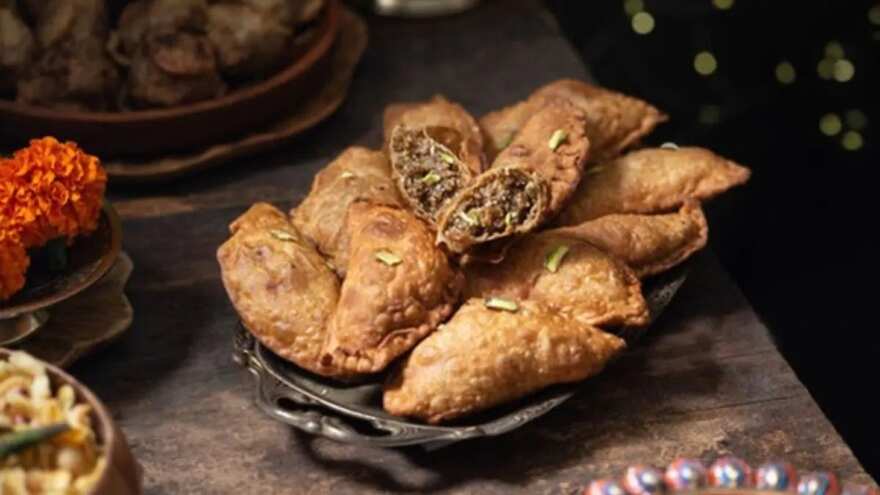 Arrange the karanjis inside the air fryer basket and cook at 165°C for about 8 minutes until golden. The jaggery melts gently inside, creating a soft and rich filling that pairs beautifully with the crisp outer layer. These karanjis can be prepared a few hours in advance and lightly reheated before serving in the evening. The result is a festive dessert that feels traditional yet subtly inventive, reflecting the evolving tastes of Indian households.