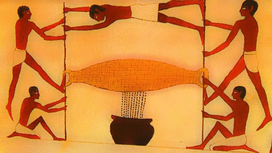 Egyptian depictions of the torsion press have often been assumed to be related to wine production, but we wanted to know: could it also be effectively used to make olive oil?