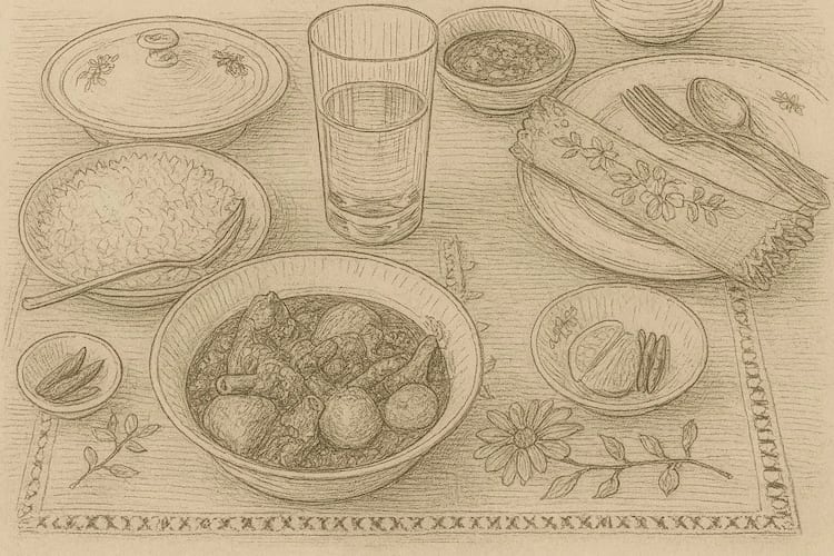 Still, the trains produced their own culinary innovations. The most famous is the Railway Mutton Curry, born on the Frontier Mail. British officers found the traditional Bengali mangsho jhol too fiery; pantry cooks responded with a milder version thickened with yoghurt and coconut milk — a golden curry that has outlived the empire that inspired it. The Railway Cutlet, an Anglo-Indian adaptation of a French côtelette, became another enduring classic: breaded, fried, and tailored to suit everything from mutton to chicken.