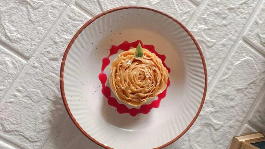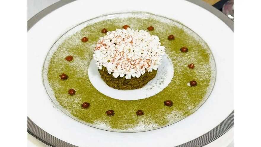 Neha Gupta’s sweet creation is not only a feast for the eyes but also for the palate—case in point her Coconut Pancake with Besan Mousse. Combining sweet, lacy pancakes with whipped besan halwa, the contemporary take on traditional Indian desserts is truly a showcase of her creative and culinary expertise in the kitchen. Click here to find the full recipe.