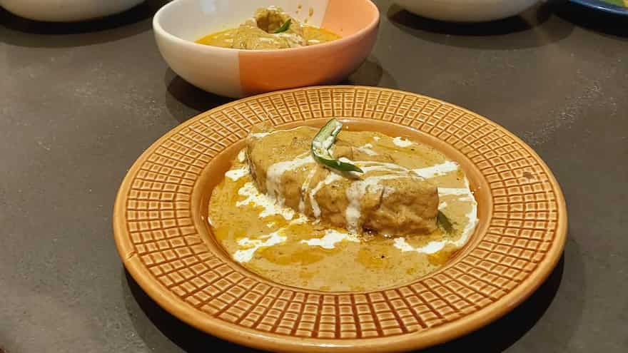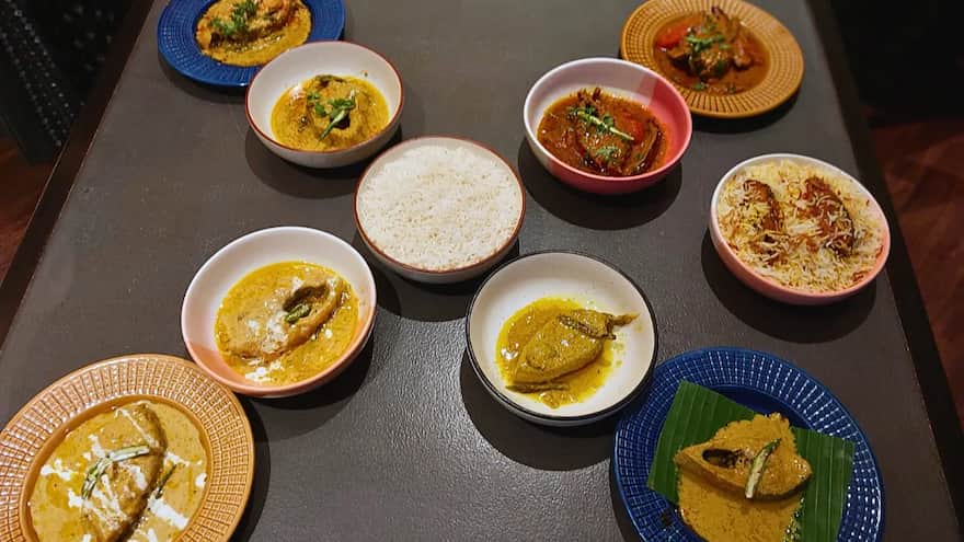 Hilsa is cooked in a rich, creamy gravy made with yoghurt, ground nuts, and spices. This luxurious dish offers a delicate balance of traditional Bengali flavours with a creamy, comforting texture.