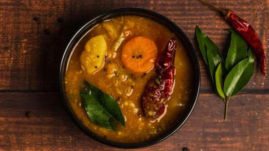Unlike some South Indian sambars, Udupi Sambar has a unique flavour profile that is slightly sweet, mildly spiced, and is prepared without onion or garlic, which is used as temple bhog. Prepared with freshly ground masala of roasted spices as well as coconut, it pairs perfectly with steamed rice or idlis. Jaggery gives a subtle sweetness that balances the tang of tamarind. Udupi Sambar is deeply connected to temple cuisine, as well as the famous Udupi Krishna Matha. It is a must-try dish that represents Karnataka’s spiritual and culinary heritage.