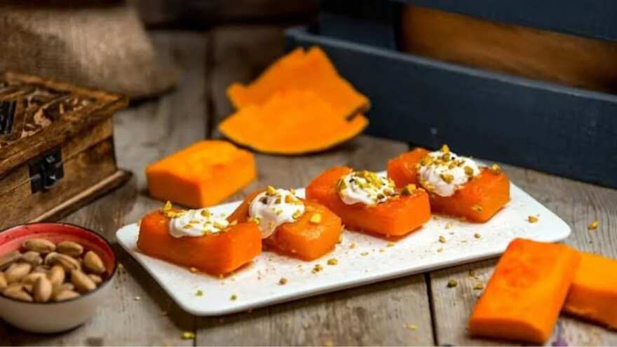 Pumpkin kheer is not as commonly offered as other dishes, but it has grown in importance for devotees who wish to prepare a satvik bhog in orange. Grated pumpkin is simmered slowly in milk and cooked until tender. Sugar and cardamom powder add sweetness and flavour, and saffron brings out the desired colour. The kheer is often finished with dry fruits and raisins for added richness. Pumpkin is considered a pure ingredient in satvik cooking, and when prepared in this manner, it creates a wholesome and symbolic dish for the goddess.