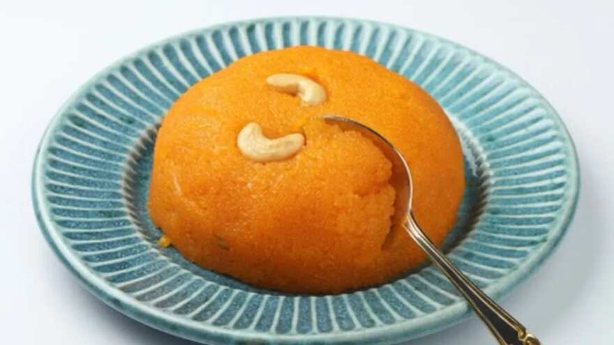 Sweet potato halwa is a traditional dish that is especially suitable for fasting and festival days. Boiled sweet potatoes are mashed and cooked slowly in ghee until they take on a smooth consistency. Milk or condensed milk is added for richness, along with sugar or jaggery for sweetness. The natural orange colour of sweet potatoes makes this halwa an ideal choice for the seventh day bhog. Cardamom, saffron, and dry fruits provide extra flavour and texture. This halwa is considered nourishing and easy to digest, aligning perfectly with the satvik principles of Navratri cooking.