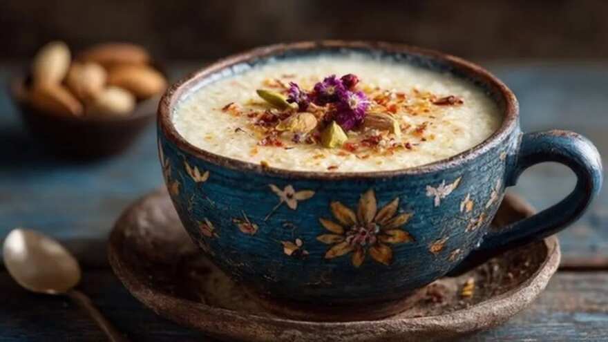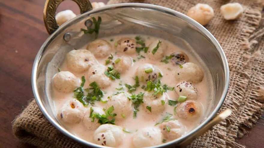 Makhana, or foxnuts, are a common fasting ingredient usually eaten roasted with a little ghee. At midnight, however, they can be turned into something more indulgent by preparing a light kheer. Roasted makhanas simmered briefly in milk with sugar and cardamom create a creamy dessert. When served in small glasses as kheer shots, it feels special without being heavy. The preparation can be made faster if milk is already boiled earlier in the evening before leaving for Garba. This dish adds a festive touch to midnight snacking, especially for those who crave something sweet.