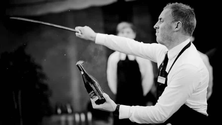 Opening a standard bottle of Champagne on New Year's Eve just before midnight almost seems too simple. Sabrage is an option if you truly want to make the occasion feel grandiose, dramatic, and NYE-coded. The ancient (and perhaps bizarre) practice of using a sabre to open a bottle of Champagne is known as sabrage. In fact, it is just as excessive as it sounds. The narrative dates back to Napoleon's reign during the French Revolution. Locals greeted Napoleon and his army with bottles of Champagne as they triumphantly came home. It was impractical for the soldiers to stop and carefully pop a cork because they were riding horses and had their hands full of reins. Rather, they continued the celebration by swinging their sabres and knocking the top off the bottle. Sabrage appeared out of nowhere.