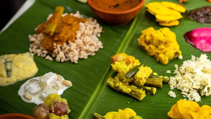 Onam, the harvest festival of Kerala, captures nature’s bounty perfectly. The ten-day festival marks the harvest season and the homecoming of King Mahabali with floral arrangements, traditional music, and, of course, the grand feast, aka Onam Sadhya. Served on a banana leaf, this elaborate vegetarian spread can include up to 25 to 30 dishes, all made from the freshest ingredients.