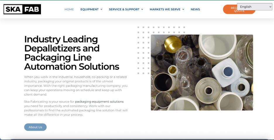 Ska Fabricating offers many automated machines to optimize labor, throughput and uptime, giving beverage companies numerous opportunities to remain competitive and meet performance targets. From container rinsers to bulk palletizers, Ska Fab offers a complete assortment to address the requirements of today’s beverage packagers and manufacturers.