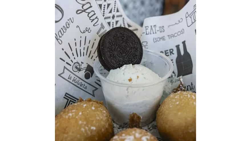 KLIMON Vanilla Boom Ice Cream – served alone as a dessert and also featured in Tacotarian’s Fried Oreos and Buñuelos, offering a rich, nostalgic finish without the dairy.
