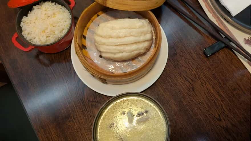 Among the curries, Slurrp tried the Shamu Datsi, a creamy, spicy stew made from mushrooms, cheese, and green chillies. This creamy curry was served with either Tingmo (traditional Tibetan steamed bread) or rice, and you can pick either option. It was so comforting and satisfying that it was hard to stop at just one bowl. The flavour and taste made it a wholesome dish.