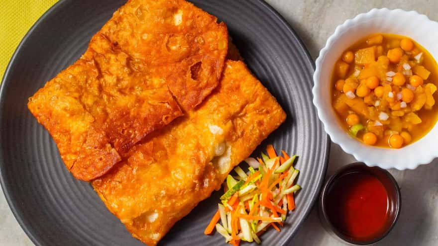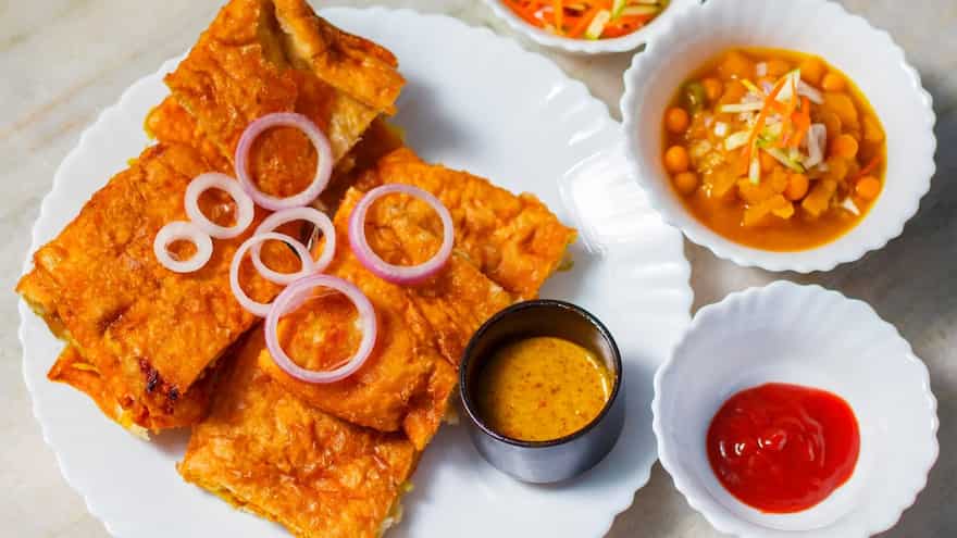 Kolkata’s innovative yet authentic street dishes are famous for their flavours as well as textures. The ever nostalgic luchi and kochouri are sure always on mind, but when looking for something more extravagant, Mughlai paratha is one of the best choices.