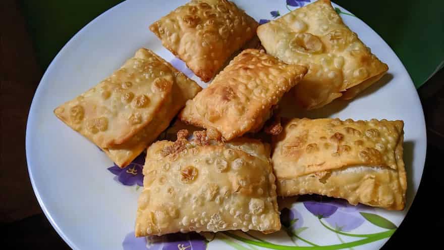 Fish Mughlai paratha is a lesser-seen coastal adaptation where finely minced boneless fish replaces meat. Firm varieties like bhetki are preferred because they hold structure after cooking. The fish is lightly sautéed first with ginger, green chilli, and a touch of turmeric to remove the raw aroma. It is then mixed with beaten egg before being folded into thin dough. This version is uncommon because fish releases moisture quickly, making it harder to control the texture inside the sealed paratha. It is usually served with kasundi and sliced onions rather than heavy curry.