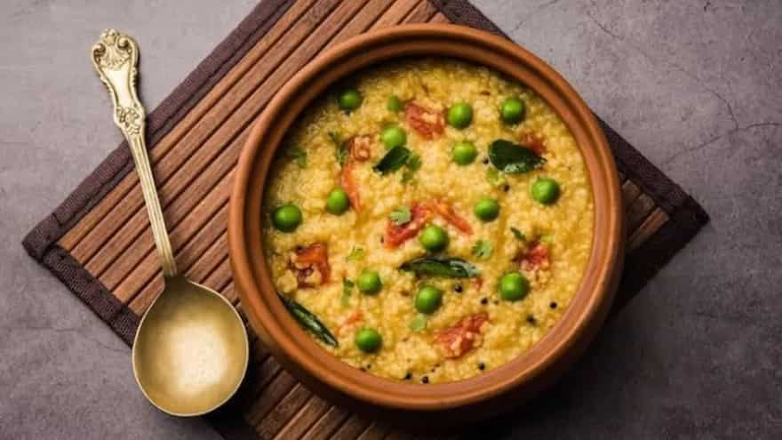 This is not your usual moong dal khichdi. Mix equal parts of tuvar, masoor, and moong dal with a handful of broken wheat (dalia). Add chopped lauki or spinach, a clove of garlic, and some haldi. Pressure cook the mixture on induction using the pressure-cook mode if your stove supports it. Add salt at the end. The texture is soft and porridge-like, but it keeps you full for hours. Add ghee if you want richness or skip for a low-fat version.