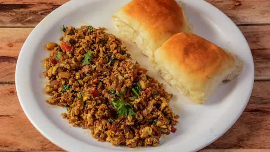 To make, simply soak soya chunks in the hot water, squeeze them thoroughly and chop them finely. Sauté onions, tomatoes, and spices to make the base and add soya chunk and cook for about 5 to 7 minutes. In the end, add coriander leaves and serve over toast.