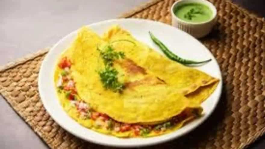 2. Besan Cheela With Chutney And Warm Veg