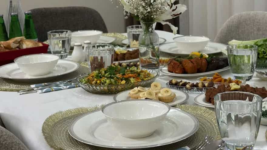 Since the Iftar fast is traditionally broken with dates and water, arrange generous quantities of soft or stuffed dates on the platter. Fresh fruits like watermelon chunks or oranges will aid hydration. Arrange glasses of rose-infused or cucumber-infused water which rejuvenate the body after a day of fasting.