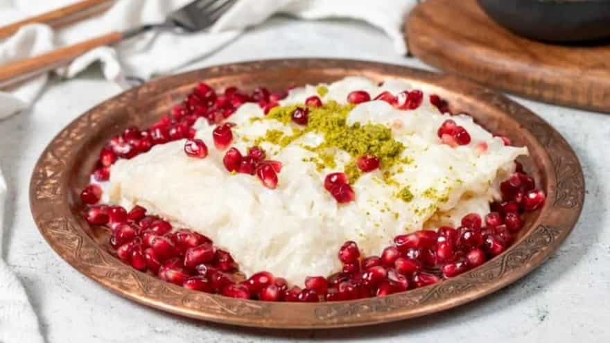 Turkey has a rich history of palace cuisine that influences its Ramadan traditions. One of the most delicate and lesser known desserts outside the region is Güllaç. This dish is considered the precursor to baklava but is much lighter. It is made from large, thin layers of cornstarch pastry that are soaked in warm milk infused with sugar and rose water. Between the layers, crushed walnuts or pistachios are scattered. It is typically garnished with pomegranate seeds, which look like jewels against the white milky pastry. Because it is so light and airy, it is the perfect conclusion to a heavy meal.