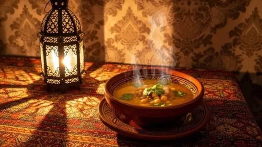 Across the continent in Morocco, Harira serves as the definitive Ramadan soup. While it is well known within the country, its complexity is often underestimated abroad. It is a tomato based soup thickened with lentils, chickpeas, and fine vermicelli. What makes it unique is the use of tadouira, a thickening mixture of flour and water added at the end, along with a generous amount of fresh coriander and parsley. It is frequently eaten with Chebakia, a sesame cookie coated in honey, providing a perfect balance of savoury and sweet.