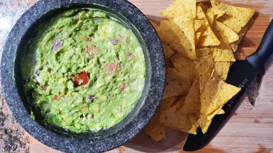 For a milder dip, try guacamole, simply mash or blend ripe avocado with chopped onions, garlic, lemon juice, and salt. Do note that avocados need to be just the right level of ripeness for a good guacamole.