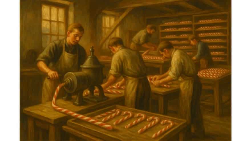 In 1957, the McCormack family in Indiana invented a machine that could twist stripes and bend hooks automatically. Before that, every candy cane was shaped by hand — a precarious job requiring precise timing and burn-proof fingers.