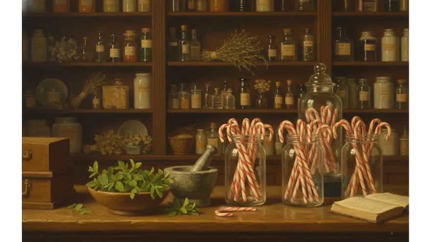 By the 1920s, the red-and-white peppermint candy cane had crystallized — a product of Victorian herbalism, American manufacturing, and the global sugar supply chain.
