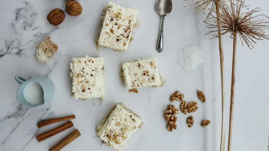 Made from freshly scraped coconut and sugar, and finished off with light touches of crushed cardamom, coconut barfi from the southern Indian provinces can be the small-bite sweet treat you distribute among neighbours and friends to mark the national holiday. Coconut barfi carries the subtle sweet and creamy notes of the fresh fruit coupled with a richness which oozes from the fragrance of cardamom wafting off platters of neatly arranged barfis. Easy to make and one of the best sweets for sharing with a large crowd, a plush white coconut barfi stands in for meaningful themes like peace, purity and prosperity.