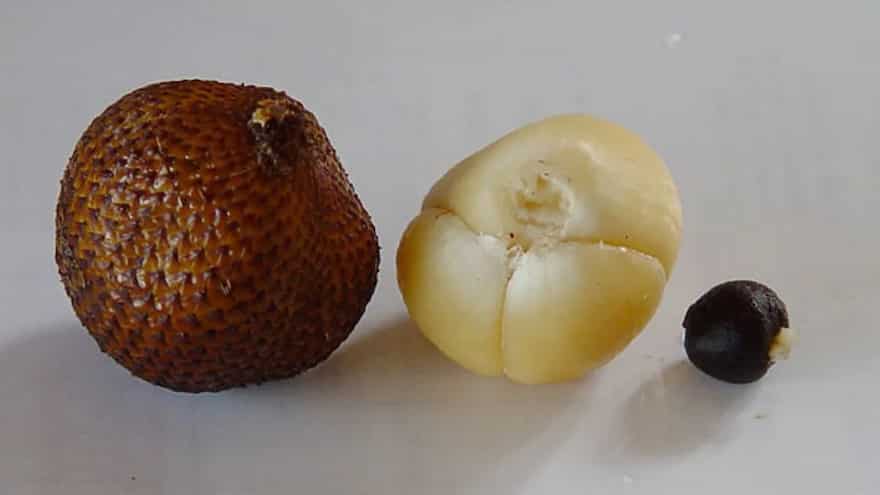 Salak, or "snake fruit," is a small, palm-sized fruit native to Indonesia. Its reddish-brown, scaly skin gives it a snake-like appearance, hence the name. Beneath the skin lies a sweet, tangy, and slightly acidic flesh that is reminiscent of pineapple and lychee. Salak is rich in dietary fibre, vitamins, and minerals, making it a nutritious addition to your diet. The fruit is often eaten fresh or used in fruit salads, juices, and desserts.