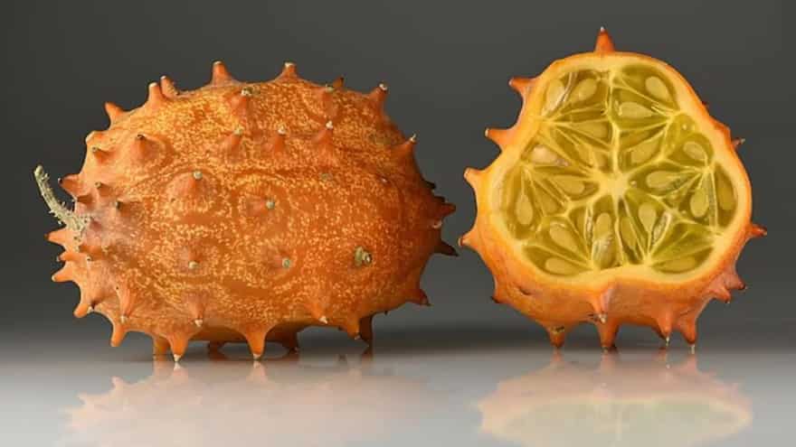 Horned melon, also known as kiwano or African horned cucumber, is a spiky, orange-yellow fruit native to Africa. The fruit has a jelly-like, lime-green flesh with a mildly sweet and tart flavour, reminiscent of a mix between cucumber, zucchini, and kiwi. Horned melon is rich in vitamins, minerals, and antioxidants, making it a nutritious addition to your diet. It can be eaten fresh, used in fruit salads, or as a garnish for various dishes.
